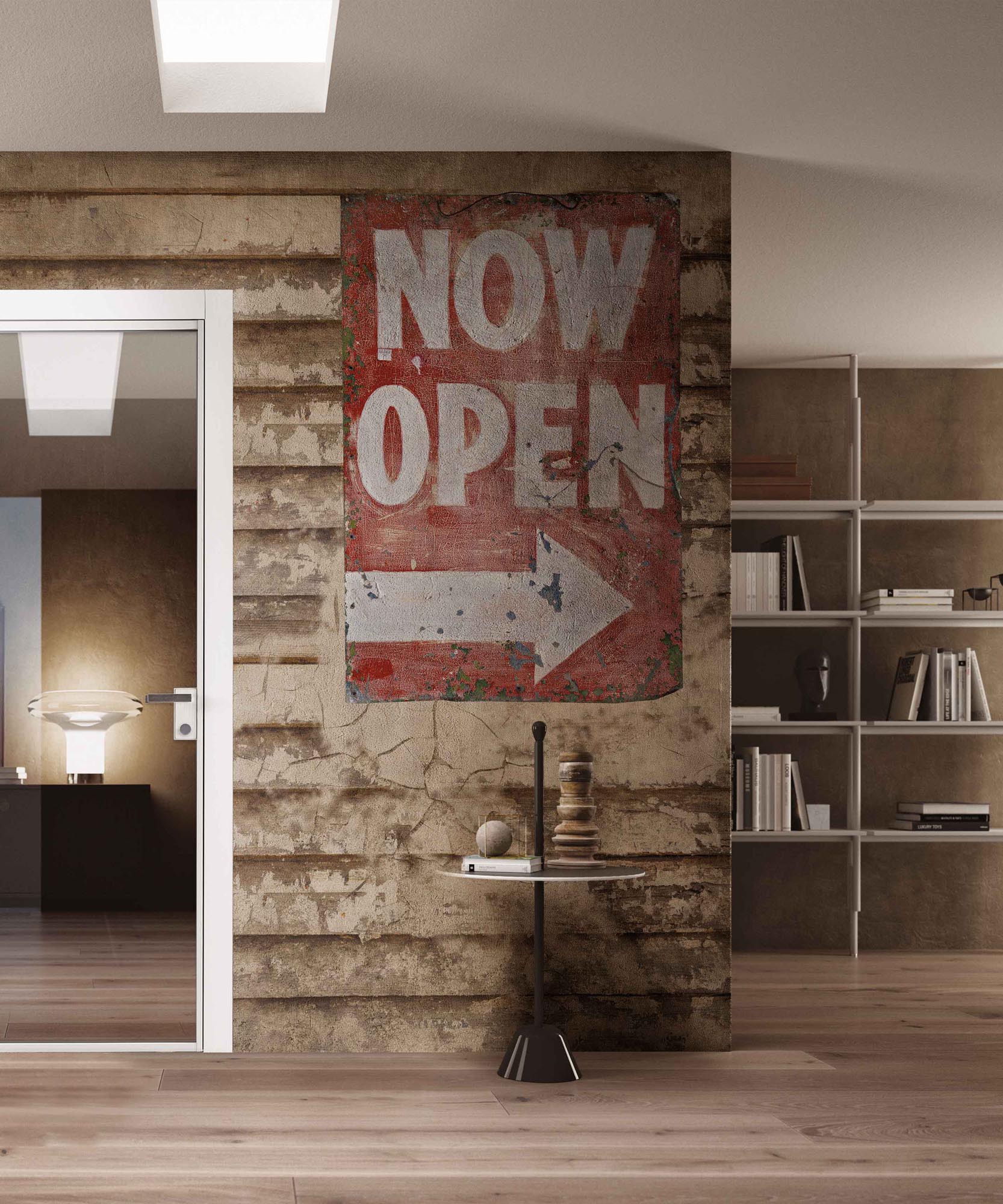 Energia metropolitana e fascino vissuto si incontrano nella carta da parati Now Open. L’effetto muro scrostato, le sfumature materiche e il dettaglio grafico vintage creano un’atmosfera autentica, dal forte impatto visivo. Perfetta per spazi dallo stile industriale o contemporaneo, aggiunge personalità e dinamismo a soggiorni, locali e zone studio. Ogni parete diventa un manifesto di carattere urbano, capace di raccontare storie e ispirare creatività.