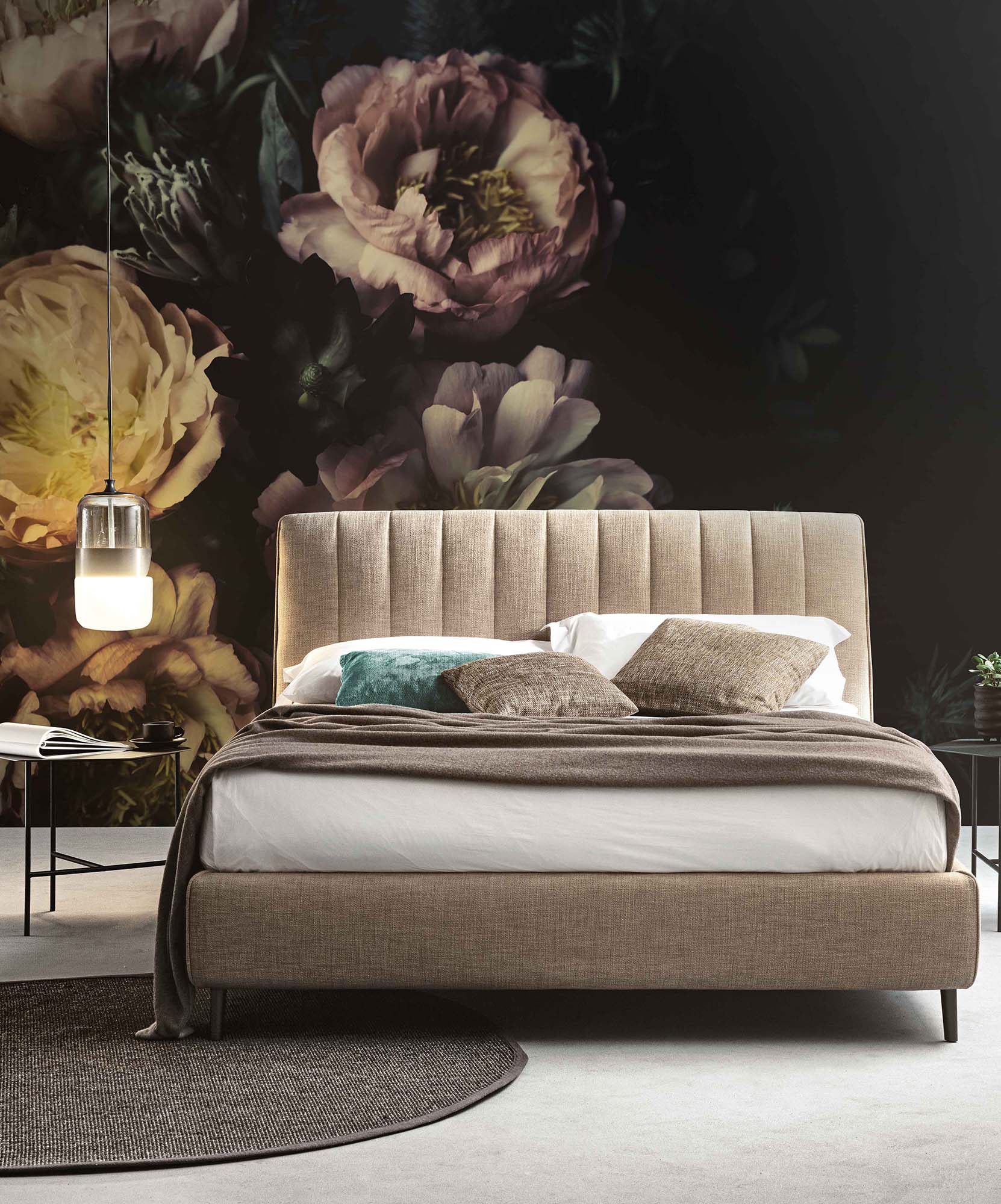 Rendi la tua zona notte un vero e proprio angolo di lusso con la carta da parati in vinile che raffigura grandi fiori ispirati a peonie e rose inglesi, posizionati lateralmente su uno sfondo nero intenso. Questo design dall’allure artistica e romantica cattura lo sguardo, trasformando le pareti in un elemento decorativo scenografico e sofisticato. Perfetta per chi desidera un’atmosfera intima, elegante e di grande impatto visivo, questa carta da parati unisce bellezza, stile e funzionalità, offrendo una soluzione resistente e di facile manutenzione per arredare la camera da letto con raffinatezza e carattere.
