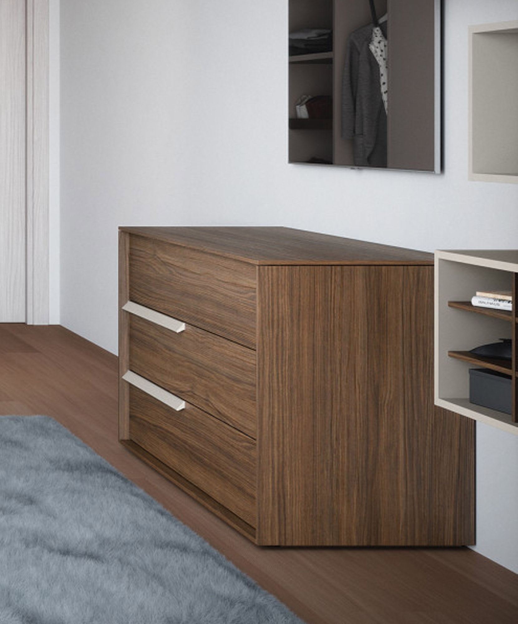 Comò a 3 cassetti in nobilitato, solido e funzionale grazie alla barra di rinforzo interna. L’apertura è gestibile sia tramite maniglia che con sistema push-pull, per un utilizzo pratico e su misura. Linee pulite e finiture curate lo rendono perfetto per ambienti moderni. Disponibile in diverse varianti per adattarsi con stile a ogni zona notte.