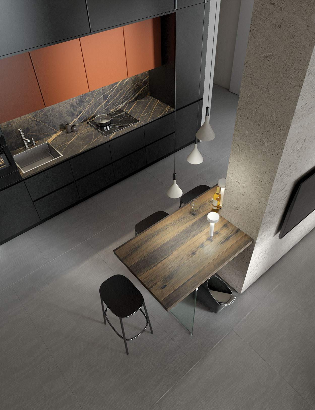 Design moderno e materiali di qualità si incontrano in questa cucina lineare in PET, pensata per chi cerca uno stile essenziale ma ricco di personalità. I pensili in laccato opaco, proposti in colore a contrasto con la base della cucina, aggiungono dinamismo e carattere alla composizione. Il top e lo schienale in laminato assicurano superfici resistenti, pratiche e facili da mantenere, ideali per l’uso quotidiano. La cucina è completa di kit elettrodomestici con cappa, lavello e miscelatore inclusi. Gli accessori, il piano snack, le colonne a vetro e le luci sono esclusi. Disponibile su progetto e personalizzabile in diverse finiture, per dare vita a una cucina su misura che interpreta al meglio i tuoi spazi e il tuo stile.