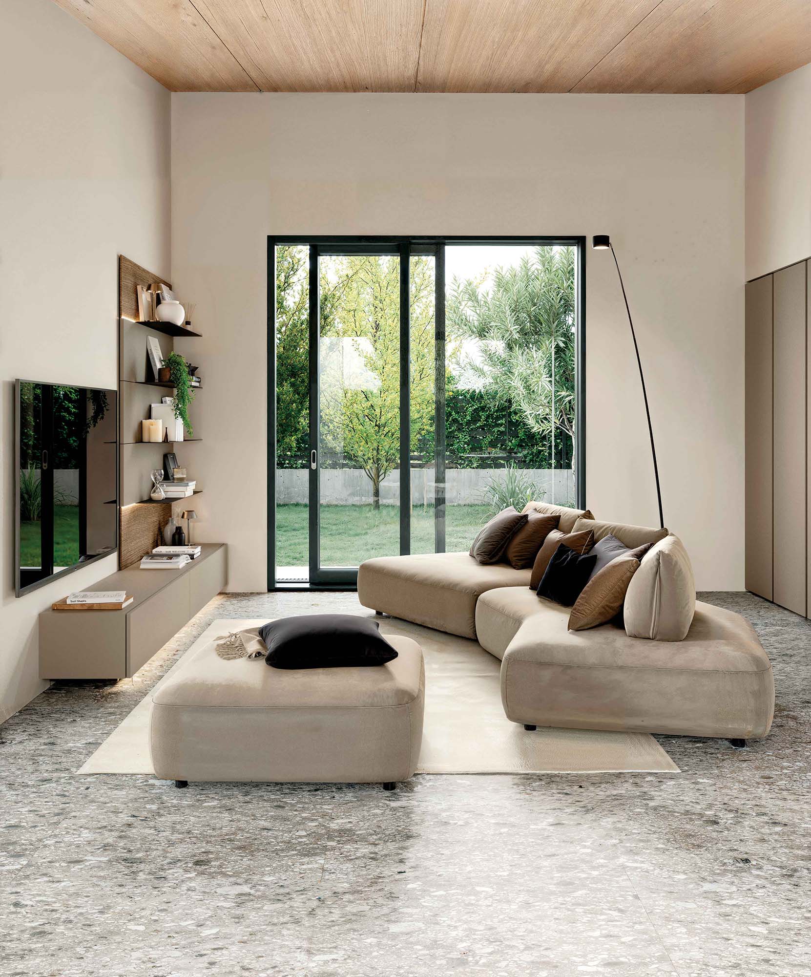 Questo divano componibile a moduli in tessuto sfoderabile si distingue per le sue forme morbide e accoglienti, pensate per creare uno spazio living raffinato e contemporaneo. Il bordo in tono, disponibile anche senza bordo (personalizzazione inclusa nel prezzo), aggiunge un dettaglio sartoriale che valorizza ogni composizione. I tre cuscini/schienale spostabili permettono di modellare la seduta secondo le tue esigenze, mentre i piedi in plexiglass trasparente alleggeriscono visivamente il volume, creando un elegante effetto sospeso. Disponibile in diverse misure e finiture, è la scelta ideale per ambienti ricercati e dal gusto sofisticato. Pouf escluso.