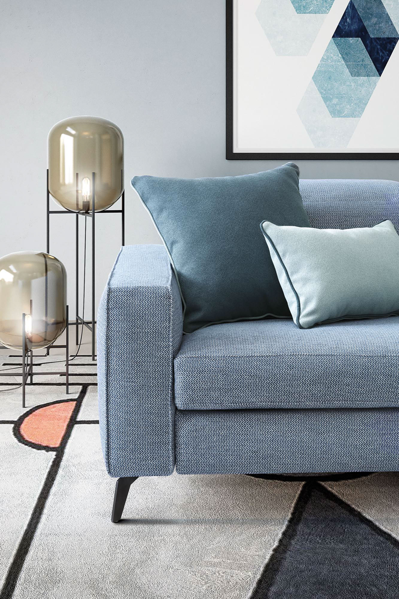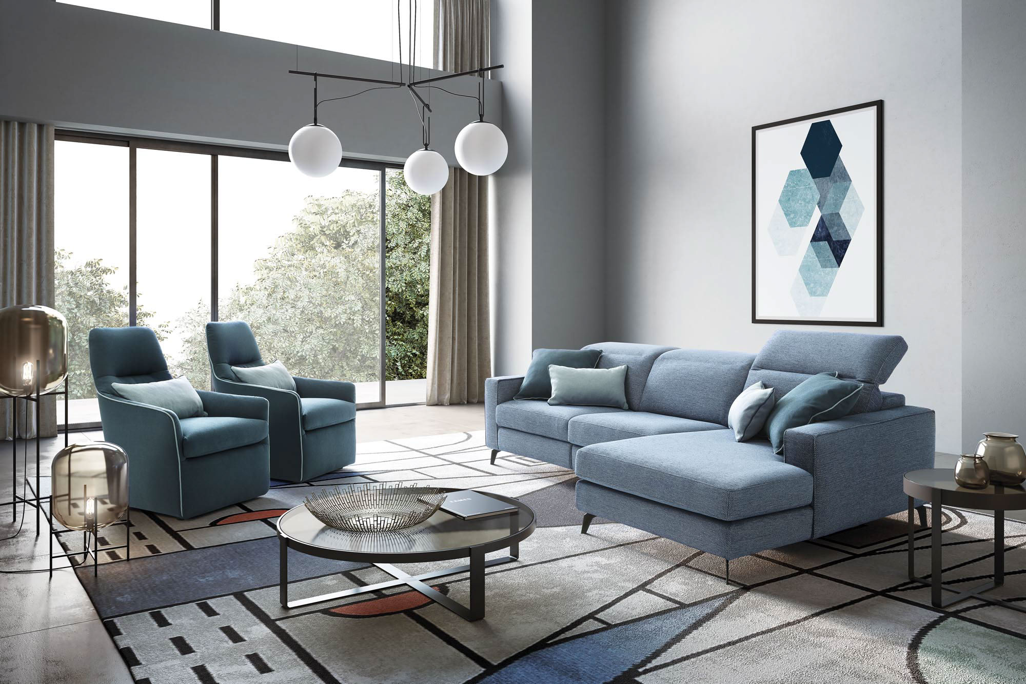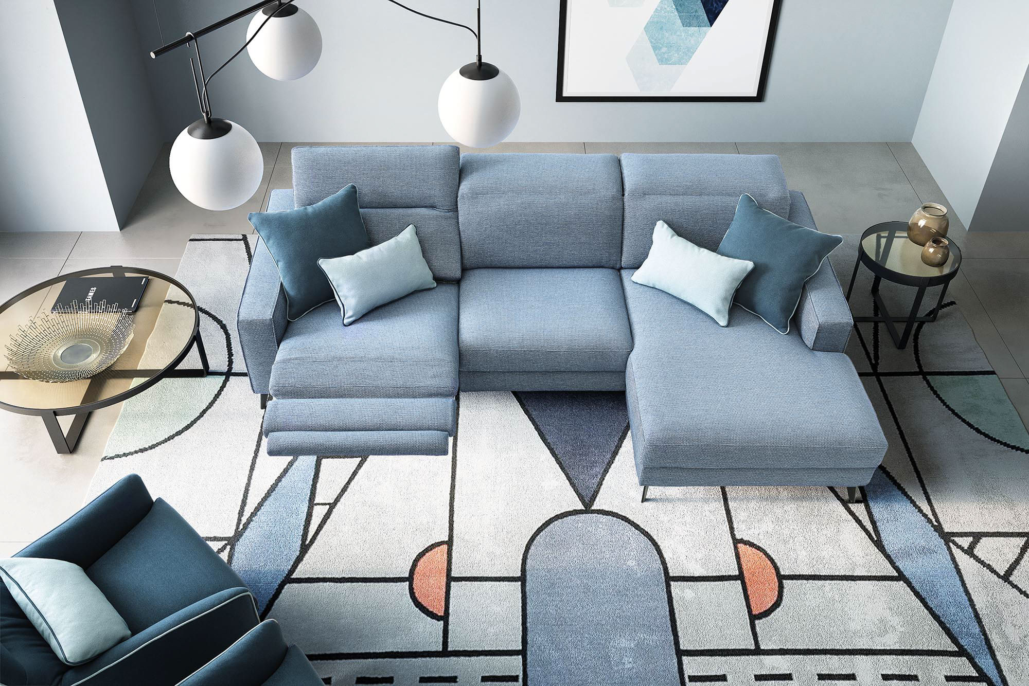 Divano componibile a penisola in tessuto sfoderabile dotato di poggiatesta reclinabili e piedi in metallo verniciato.Questo divano unisce comfort e stile contemporaneo. Disponibile in diverse misure e finiture. È possibile aggiungere un relax elettrico opzionale con maggiorazione.