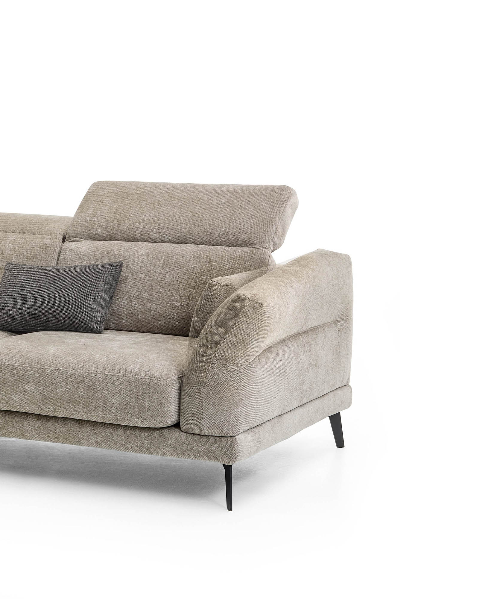 Divano lineare in tessuto sfoderabile progettato per offrire il massimo del comfort in ogni momento della giornata. I poggiatesta regolabili in 7 posizioni e i braccioli regolabili permettono di personalizzare la seduta con precisione, adattandola alle tue esigenze di relax. I piedi in metallo verniciato nero aggiungono un dettaglio moderno e slanciato, valorizzando l’estetica complessiva. Disponibile in diverse misure e finiture, è la scelta ideale per chi cerca funzionalità, eleganza e versatilità in un unico divano.