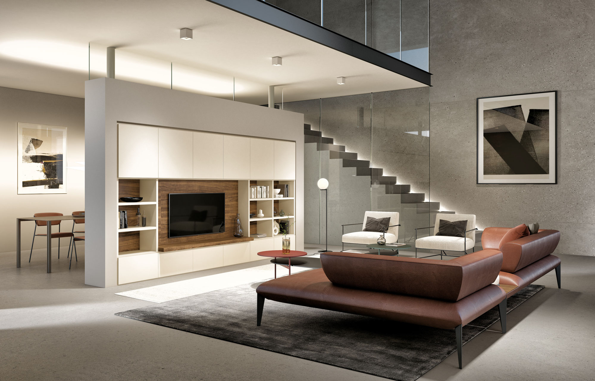Composizione a spalla in super-matt ed ecolegno che dona eleganza al tuo soggiorno equilibrando perfettamente lo stile moderno e il calore materico. Dal design pulito e dai materiali ricercati, questa composizione a spalla arreda la zona giorno con gusto e funzionalità. Fianchi e ripiani in raffinato super-matt beige caldo si abbinano a cassettoni e ad ante battenti nella stessa finitura, creando un insieme armonioso e sofisticato. Il top e gli schienali in ecolegno aggiungono un tocco naturale e accogliente. Disponibile su progetto e in altre finiture, è pensata per adattarsi con stile a ogni spazio.