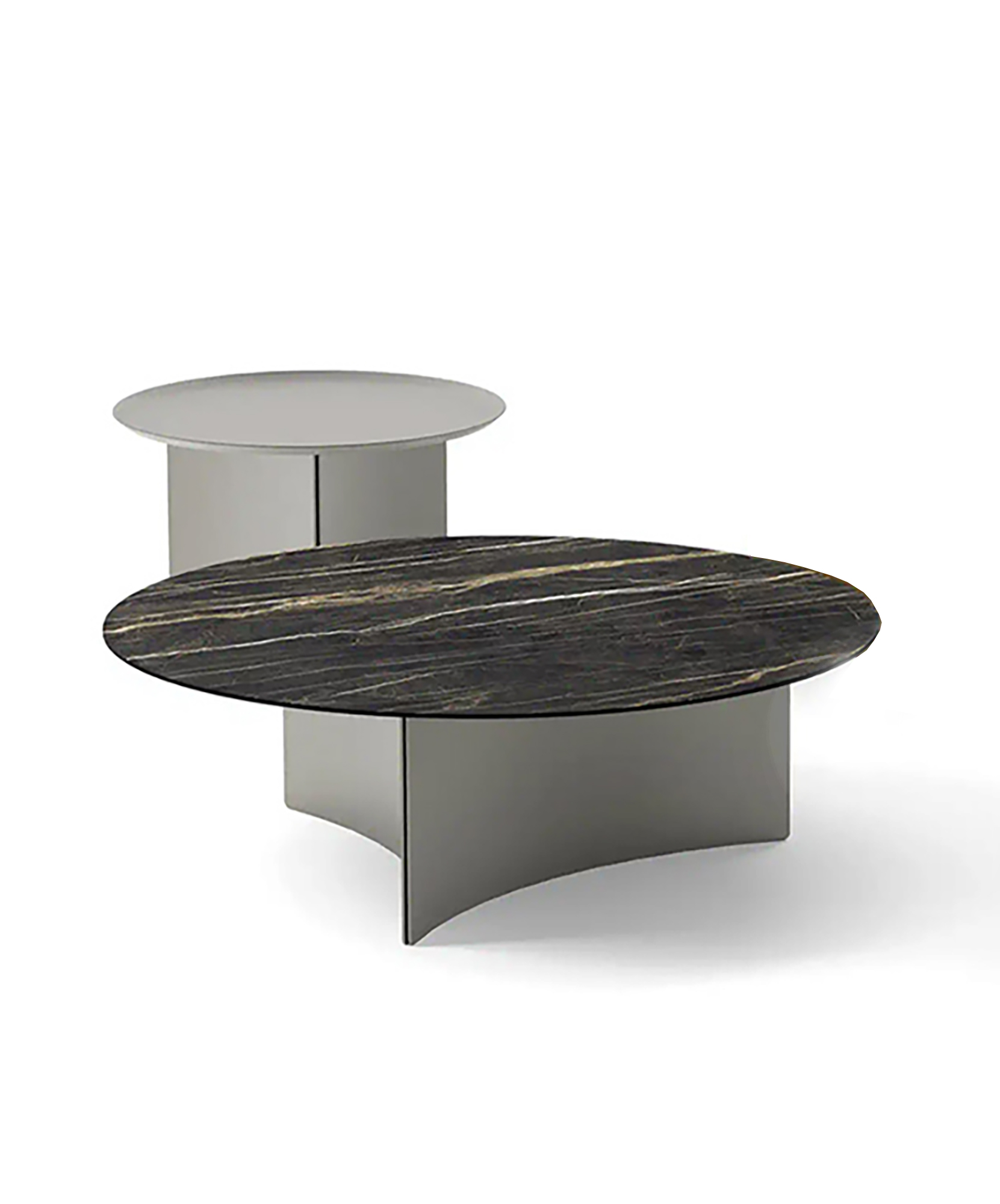 Una serie di tavolini pensata per arredare il living con personalità e raffinatezza. Disponibili in diverse misure e finiture, si distinguono per il piano rotondo in metallo sagomato a vassoio, ideale per unire estetica e funzionalità. Il basamento in metallo laccato opaco, lavorato con taglio laser e modellato in tre petali curvati, crea un effetto leggero e scultoreo che valorizza ogni ambiente. Perfetti come tavolini da salotto moderni, aggiungono carattere e armonia allo spazio.