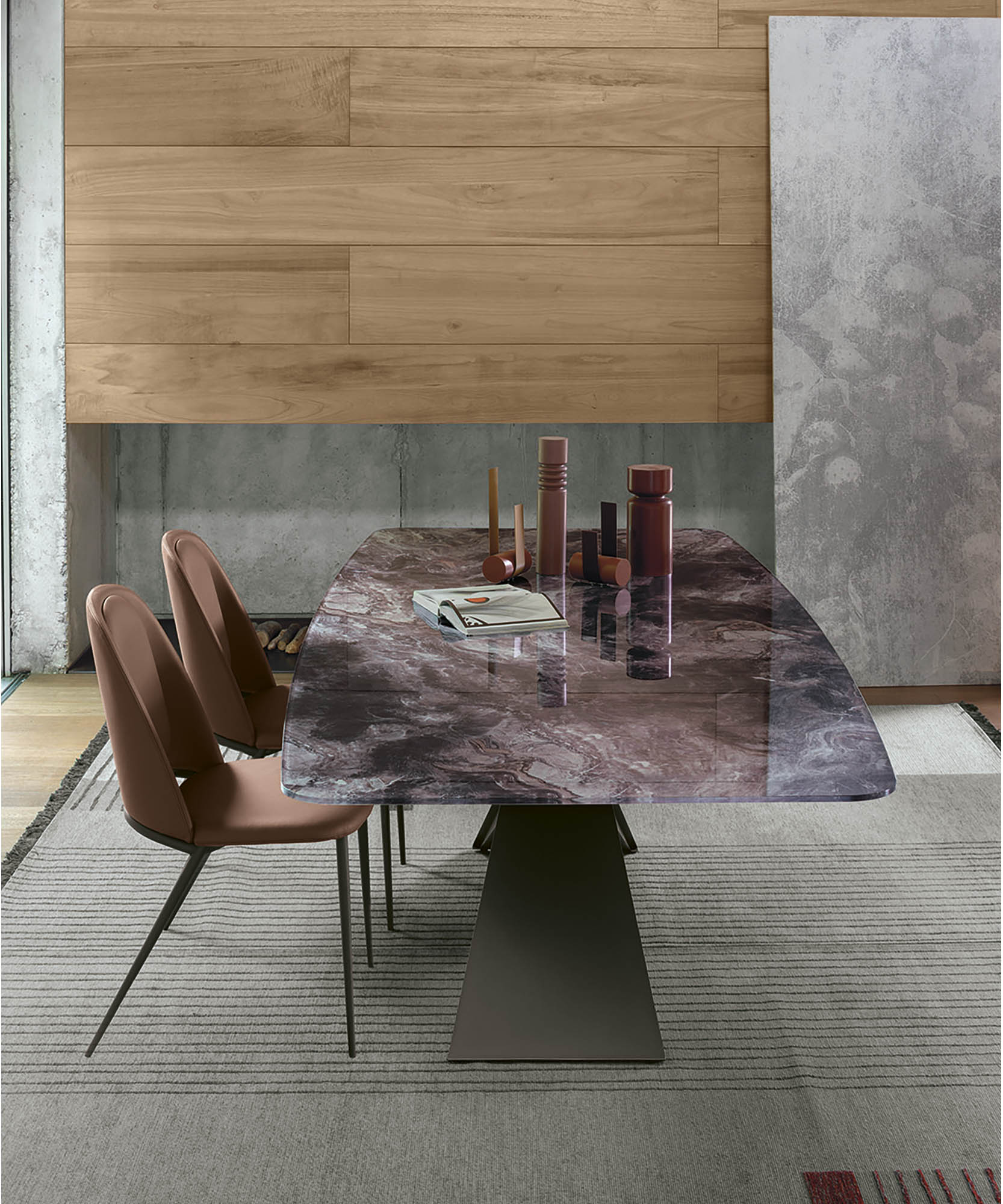 Superfici scenografiche e design contemporaneo si incontrano in questo tavolo fisso con piano a botte in finitura materica, capace di valorizzare l’ambiente con texture profonde e un forte impatto visivo. La struttura in metallo verniciato sostiene il piano con equilibrio e solidità, creando un contrasto raffinato tra materia e leggerezza formale. Disponibile in diverse misure e finiture, è ideale per ambienti moderni e ricercati.